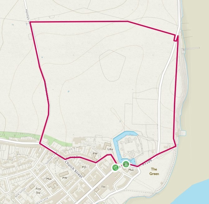 If an amble back to the coast is more your thing; jump over the style and enter the farmer’s field. Follow the edge of the field to the other side. From this path you will be able to look across over towards the castle and the picturesque town below. At the other side, and a little to the right, you will find a wrought iron gate which will take you back onto the coast road.